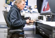Eigentlich arbeite ich den ganzen Tag. Tagsüber lenken zu viele andere Sachen ab: E-Mails und Whats- App und Telefon ... und Interviewer und Fotografen, die einen nerven. (lacht) Tagsüber mache ich eher die handwerklichen Arbeiten. Wenn ich mir etwas ausdenke, dann brauche ich komplette Ruhe, ohne Radio, ohne Telefon. Dann steige ich ein in eine andere Welt. „Was wäre, wenn ..." – das ist mein Ausgangspunkt. Manchmal gibt der Verlag schon ein Thema vor wie zum Beispiel Autofahren. Ansonsten gucke ich, was kommt.