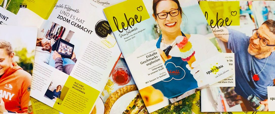 2018 stand unter dem Motto: Wir möchten einen Neubau im Bereich Kundenkommunikation. Die „unter uns“ bekam ein neues Gesicht, einen neuen Namen und einen ganz neuen Auftritt. Das 36-seitige „lebe (Dein Zuhause)“-Magazin fand Einzug in nunmehr 20.000 Haushalte. Auch in den letzten Jahren hat sich vieles getan. Mit unseren gut recherchierten Themen, lesenswerten Reportagen, spannenden Interviews, Ausflugs- und Erlebnistipps sowie mit unseren Einblicken in interne Wohn- und Bauprojekte füllen wir das Magazin mit Leben. Die „lebe“ spiegelt unsere Leidenschaft für das genossenschaftliche Wohnen, das schöne Leben in Hannover und die Verbundenheit zu den Menschen in unserer Stadt wider. Gestern, heute und in Zukunft.