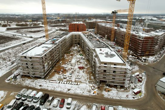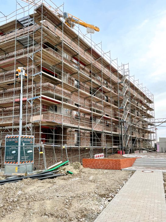 Es tut sich was im Neubaugebiet Kronsrode: Wo einst eine riesige Baustelle herrschte, zieht immer mehr Leben ein. Die 97 Wohnungen im ersten Gebäudekomplex von spar+bau sind längst voll vermietet. Im zweiten Gebäudekomplex können unsere Mieter bald weitere 89 moderne und barrierefreie Neubauwohnungen beziehen – und das auch mit kleinerem Geldbeutel.