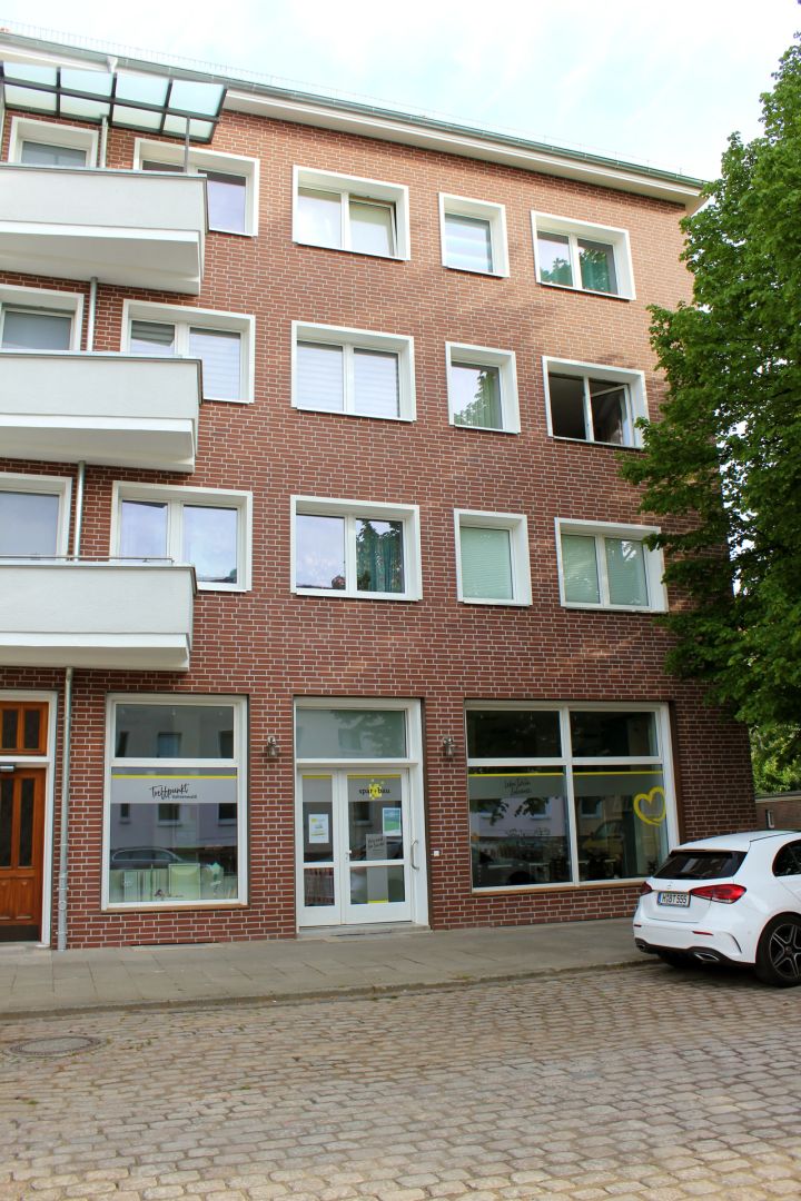 Nun ist wieder ein freier Blick auf den Treffpunkt möglich: Mit der neuen Klinkerfassade, den Leuchten und den veränderten Fenstereinfassungen erstrahlt unser Treffpunkt im neuen Glanz. Jetzt fehlt nur noch die Erneuerung der Außenanlagen, die im Herbst 2024 startet. Vorgesehen ist in einer Nische am Treffpunkt ein Freisitz sowie eine Markise vor dem großen Schaufenster. Bei diesen Maßnahmen ist allerdings erneut etwas Geduld gefragt: Die seitlichen Eingänge werden leider wieder Zuwegungsprobleme erfahren. Wir hoffen aber, dass das Ergebnis entschädigt – und machen weiterhin das Beste draus. Dafür sind alle herzlich willkommen: im Treffpunkt Vahrenwald!