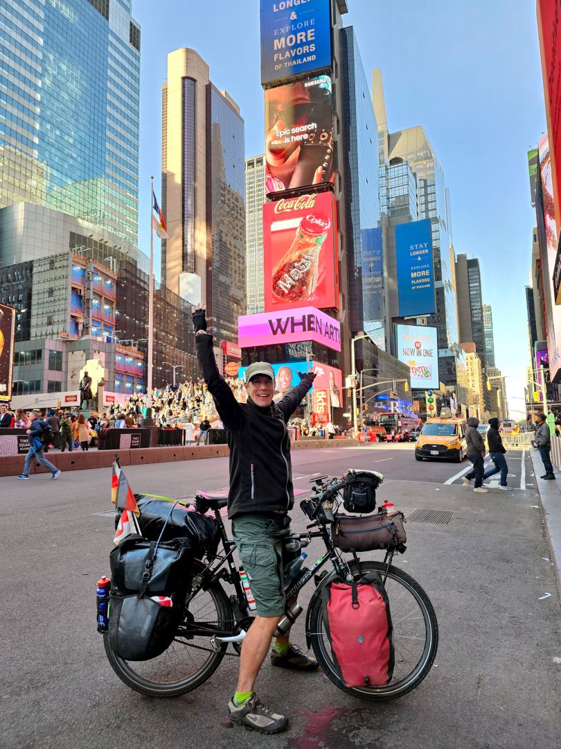 Die USA sind weit weg von einem Fahrradland: Auf den mehrspurigen Highways raste ein Lkw nach dem nächsten an ihm vorbei. Zeltplätze gibt es kaum. „Einmal fuhr ich nachts aus lauter Verzweiflung zum Flughafen, um mich dort hinzulegen.“ Trotzdem hielt das Land der unbegrenzten Möglichkeiten auch schöne Erlebnisse für ihn bereit, wie Hanover in Pennsylvania.