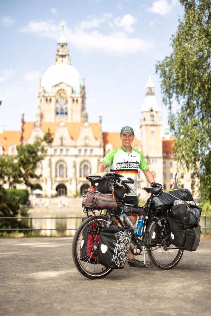 Seine Ziele: die Pyramiden in Ägypten und Orte mit dem Namen „Hannover“ besuchen sowie Spenden für die Krebshilfe sammeln. Wir trafen den sportlichen Weltenbummler …