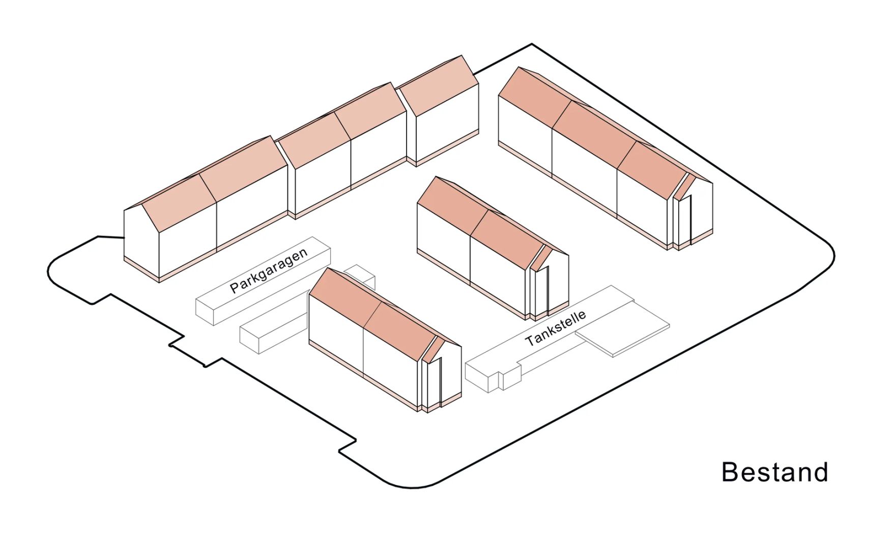 Neben der beabsichtigten Wohnbebauung auf dem frei werdenden Tankstellengrundstück sahen wir nämlich – aufgrund teilweise großer Abstände der Bestandshäuser und eines vielleicht ersetzbaren Garagenhofes – die Chance zu einer Nachverdichtung. Auf diese Weise hätte sich Wohnraum besonders wirtschaftlich schaffen lassen, ohne Grundstücks- und Erschließungskosten. Dem stand allerdings die Vermeidung von Beeinträchtigungen bei Bestandswohnungen gegenüber … so galt es hier, gewissenhaft abzuwägen.