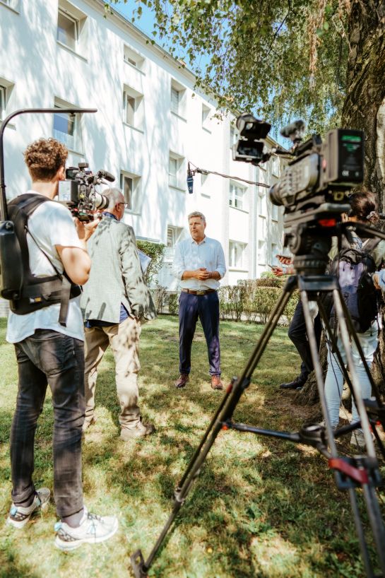 Auch für die Bewohner bedeutet die Umstellung auf eine Wärmepumpe einen klaren Vorteil. Neben der Reduktion der Energiekosten durch den Einsatz von eigenem Solarstrom sorgt die emissionsfreie Heizung für eine zukunftssichere Energieversorgung. Im Gespräch mit einem unserer Mieter erkundigte sich Habeck persönlich nach den Erfahrungen mit der Technik, die etwa in Dänemark bereits in 60 Prozent aller Haushalte etabliert ist. Die Erfahrungen dort waren vorwiegend positiv, was den Minister darin bestärkte, seine Kampagne für Wärmepumpen weiterhin entschlossen voranzutreiben.