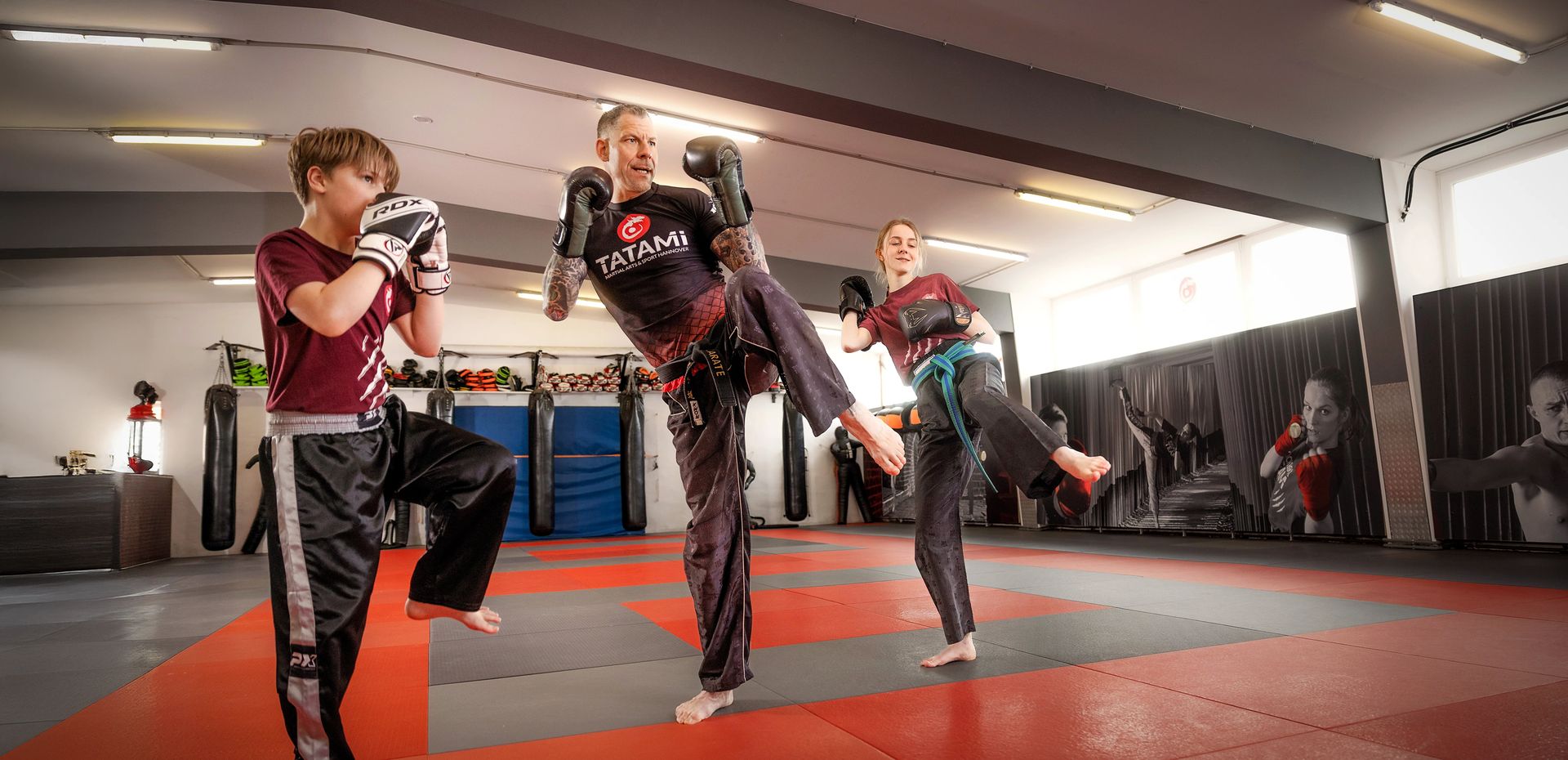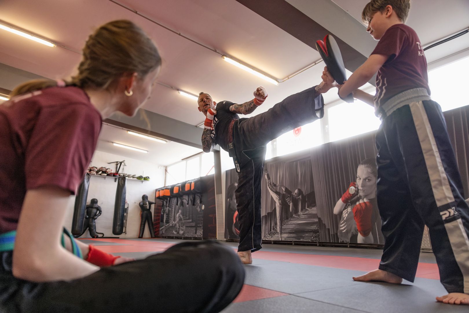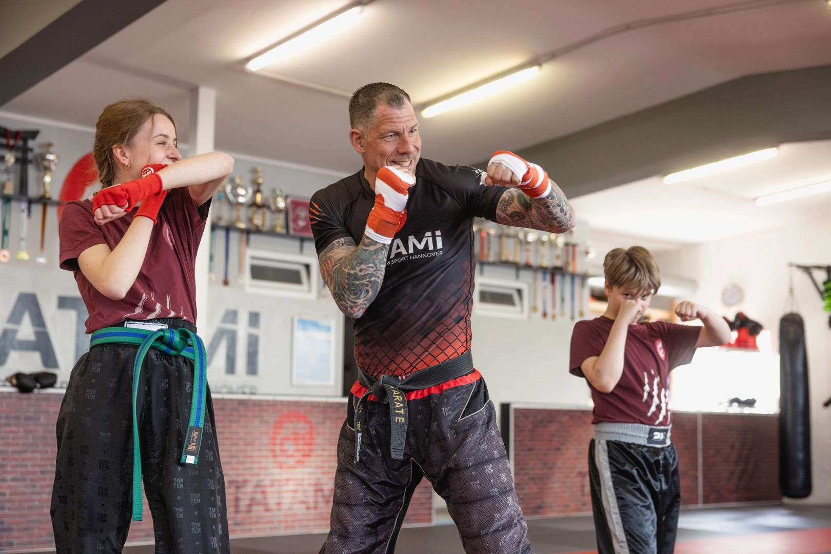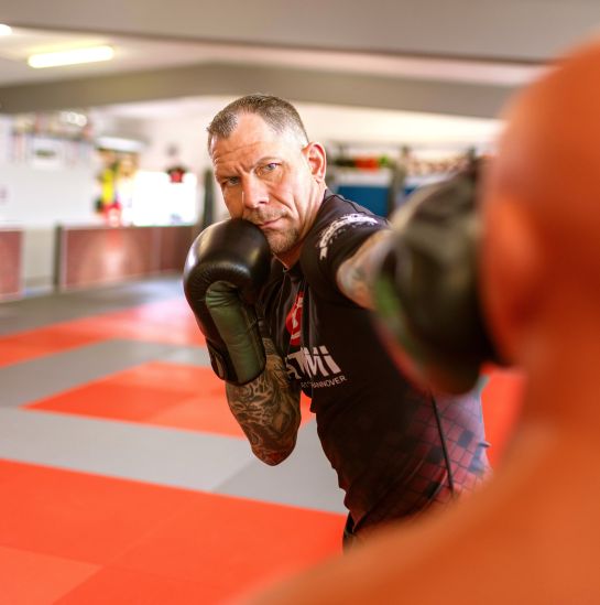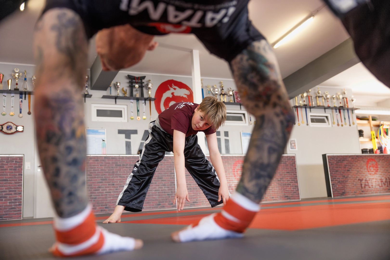 Über dem Eingang des Kampfsportvereins Tatami Martial Arts & Sport Hannover hängt ein großes rot-weißes Schild mit dem Vereinslogo: ein sich um (s)einen Mittelpunkt drehender Drache. So dynamisch, als wäre er jederzeit kampfbereit. Manfred Boyd-Carta, der 1. Vorsitzende und Mitgründer des Vereins, führt durch die Trainingsräume. Hier lernen derzeit 650 Mitglieder im Alter von drei bis 60 Jahren Kickboxen, Thaiboxen, Boxen, MMA (Mixed Martial Arts), Yoga, Selbstbehauptung, Selbstverteidigung und Fitness. Auf den Regalen an der Wand stehen unzählige Pokale – allesamt Trophäen für diszipliniertes Training und ehrlich erkämpfte Siege auf nationaler und internationaler Bühne.
