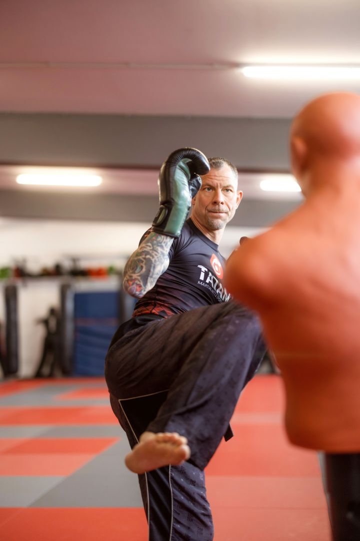 Manni will seine Trainierenden dazu motivieren, den Drachen in sich zu wecken. Er glaubt daran, dass jeder einen in sich trägt. Das tut er über das individuelle Fördern, spezielle Trainingsformen, ein gemeinsames „an die Grenzen gehen“ und über die im Anschluss stattfindende Gürtelprüfung, die die erbrachte Leistung sichtbar macht. Er selbst ist übrigens ein echtes Unikat: sehr energiegeladen, sehr durchtrainiert, sehr tätowiert. Würde er behaupten, er könne auch fliegen und Feuer spucken, wäre das absolut glaubhaft.
