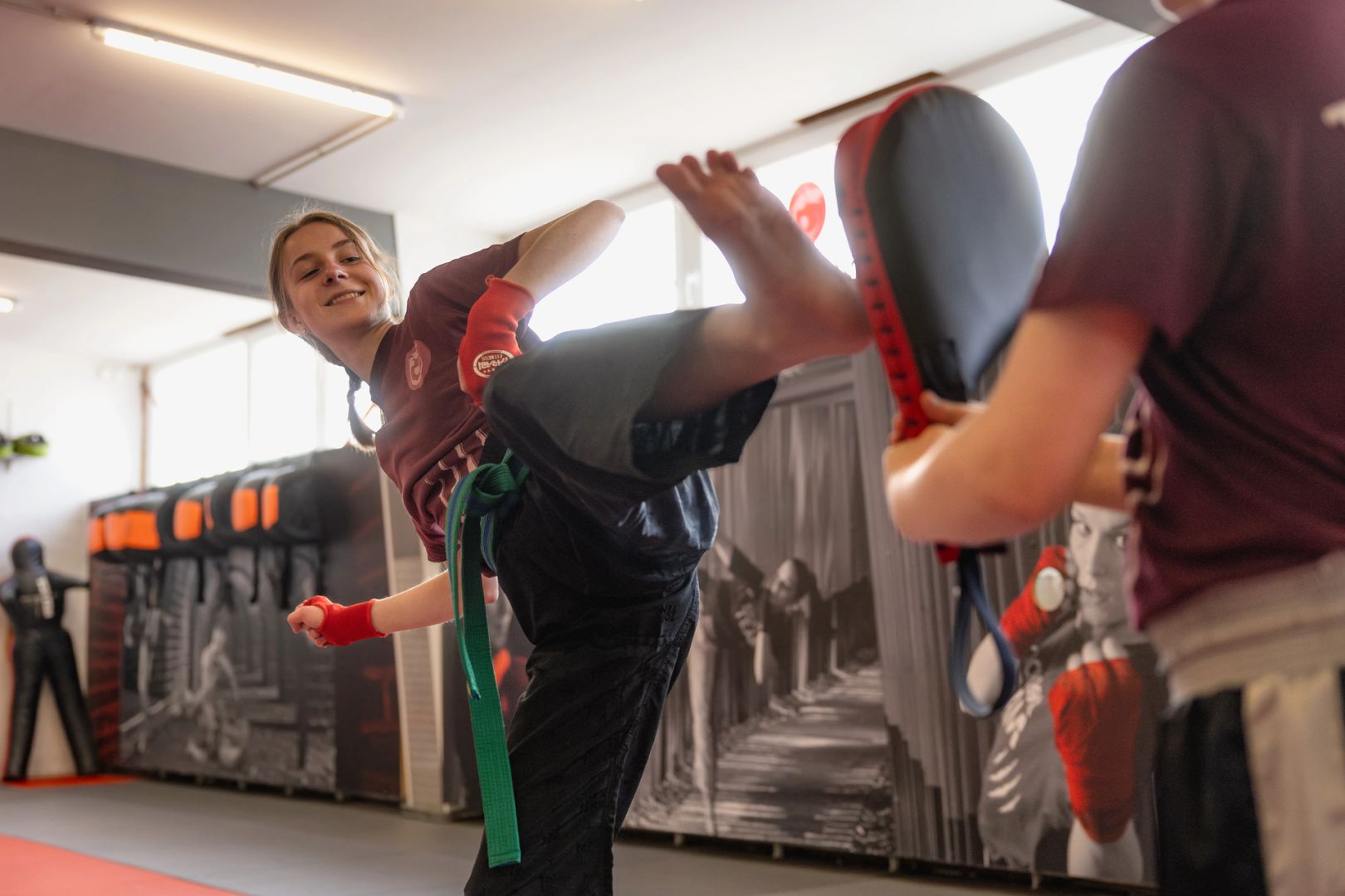 Zusätzlich zum Kampfsport bietet Manni Gewaltpräventionskurse an. Er bestätigt eine Zunahme an Gewaltbereitschaft; gerade Jugendliche würden sich vermehrt mit Messern bewaffnen. Das sei ein Riesenproblem. Überzeugt davon, dass Gewaltprävention die Zukunft ist, um eskalierende Konflikte zu vermeiden, arbeitet er intensiv daran, die jungen Leute aufzuklären. Vor Kurzem trainierten 30 Mädchen von der Bismarckschule bei ihm. Ein paar hatten wenig Selbstvertrauen oder fühlten sich als Opfer. Durch das eigens entwickelte Selbstbehauptungstraining konnte Manni die in ihnen schlummernden Kräfte wecken. „Die sehr stillen Mädchen sind körperlich und mental über sich hinausgewachsen, nach drei Tagen ging es hier richtig ab“, freut er sich über deren Erfolgserlebnisse. Generell sei auch das Feedback der Lehrer sensationell, was für Manni heißt: „Alles richtig gemacht! Menschen mit wenig Selbstwertgefühl stärke ich. Die, die zu viel davon haben, versuche ich zu kompensieren und in die richtige Bahn zu lenken.“ Seine Kurse werden immer häufiger gebucht, insbesondere von Schulen und Unternehmen.