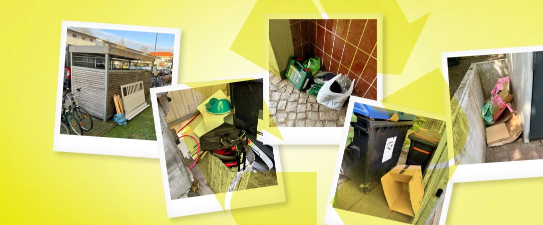 Olaf Juch, Objektbetreuer der Wohnbetreuung Nord, zeigt das wachsende Pro-blem: unsachgemäß entsorgter Abfall, überquellende Tonnen, wilde Müllablagerungen auf der Straße, in Treppenhäusern oder auf Grünflächen. „Stadtteilübergreifend stellen wir in allen Quartieren fest, dass das Thema ‚Falsche Müllentsorgung‘ überhandnimmt.“ Sein ernüchterndes Fazit: „Der Alltag der Objektbetreuer ist zunehmend der, dass sie Müllentsorger für unsere Mieter sind.“