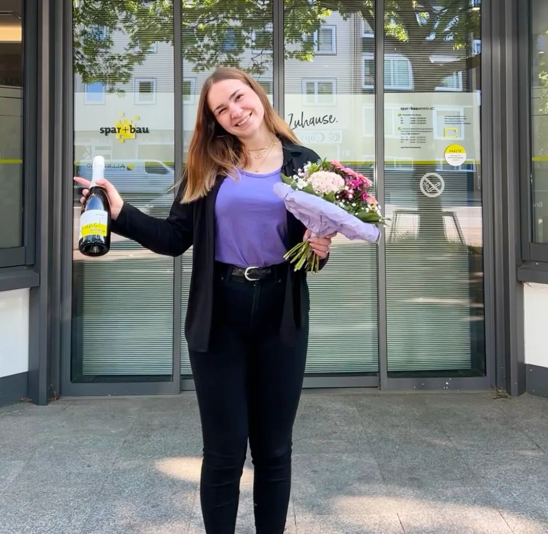 Die Prüfungsvorbereitung mit dem EBZ-Fernlehrgang war superhilfreich. Das kann ich nur allen Azubi-Neulingen raten, weil es mir geholfen hat, entspannter und sicherer in die eigentliche IHK-Abschlussprüfung zu gehen. Ich war bei der Prüfung zwar aufgeregt, aber insgesamt bin ich mit meiner Leistung sehr zufrieden – und stolz, es geschafft zu haben. Besonders freue ich mich, dass ich spar+bau erhalten bleibe: Als Springer unterstütze ich jetzt verschiedene Abteilungen, vor allem die Sparabteilung, aber auch die Vermietung sowie Planen und Bauen. Es bleibt also abwechslungsreich! Und danach? Vielleicht geht’s erstmal für längere Zeit ins Ausland. Ich bin gespannt, wohin mich mein Weg noch führt.“