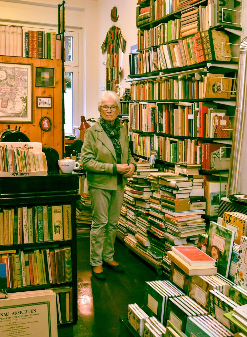 Nur wenige Meter weiter erzählt Ute Adam, Tochter der Gründerin Ingeborg Becker, die Geschichte ihrer außergewöhnlichen Buchhandlung. „Meine Mutter hat dieses Antiquariat 1945 eröffnet – als Alleinerziehende mit vier Kindern. Es war das erste wiederaufgebaute Haus in einer Trümmerlandschaft.“ Heute ist der Laden ein charmantes Sammelsurium aus Klassikern, Kunstbänden und Raritäten. „Ich liebe diesen Ort. Er ist ein Teil von mir“, so die Inhaberin. „Wir sind hier auch eine kleine Kultureinrichtung. Freitags haben wir zum Beispiel eine Weinrunde, in der wir uns austauschen.“